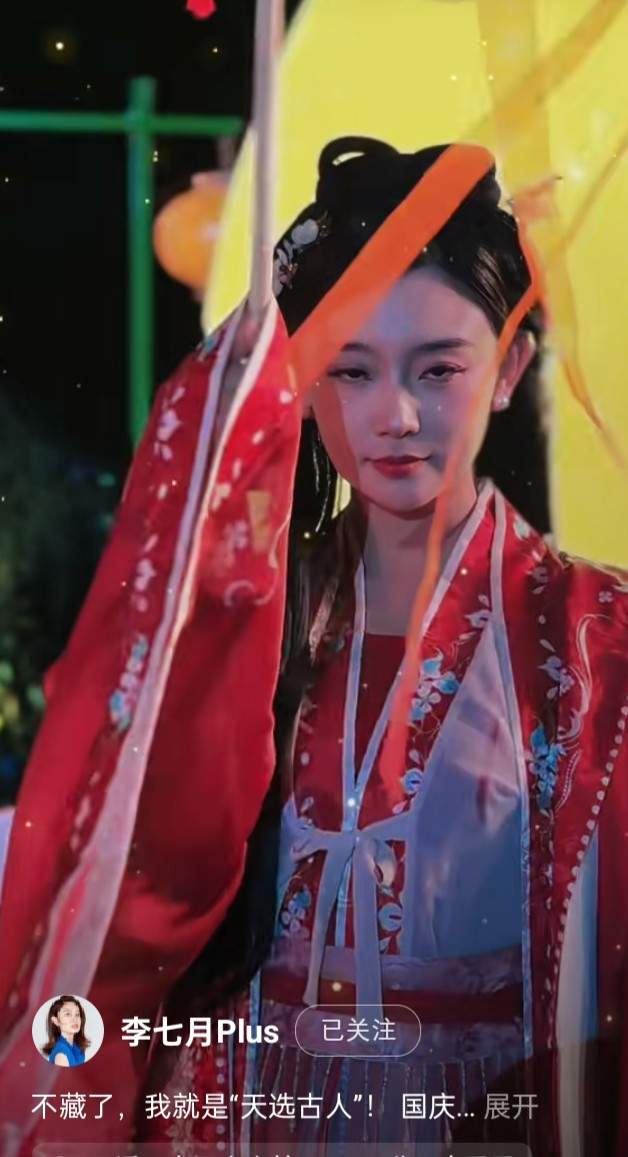 李七月一袭古装, 祝双节快乐, 幸福安康