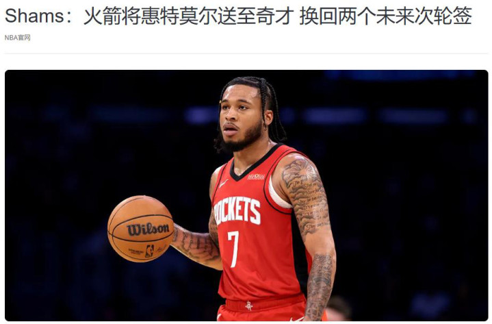 对火箭管理层来说,杜兰特加盟只是第一步。据NBA中国官网报道:火箭和奇才达成交易,用惠特莫尔换回两个未来次轮签。