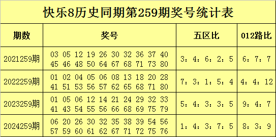 徐先生快乐8历史同期第259期号码分析